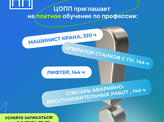 Обучение в центре опережающей профессиональной подготовки будет для Вас бесплатным.