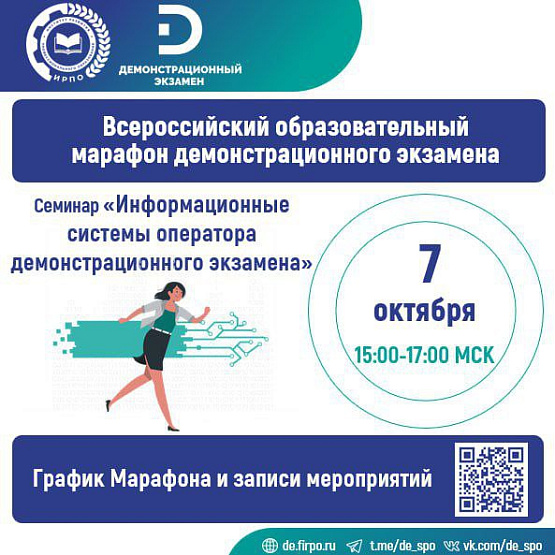 Уважаемые коллеги! Напоминаем, что завтра, 22 мая, пройдет очередное мероприятие Всероссийского образовательного марафона демонстрационного экзамена - семинар «Профессиональный интенсив по разработке оценочных материалов».