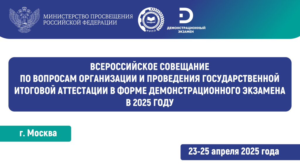 - В 12:45 совещание с региональными операторами демонстрационного экзамена (очно с трансляцией).