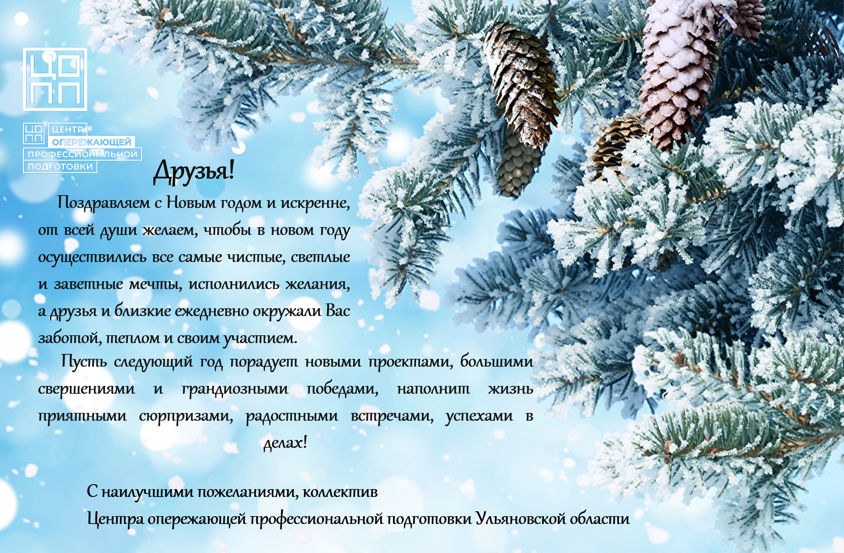 Поздравляем с Новым годом и искренне, от всей души желаем, чтобы в новом году осуществились все самые чистые, светлые и заветные мечты, исполнились желания, а друзья и близкие ежедневно окружали Вас заботой, теплом и своим участием. Пусть следующий год порадует новыми проектами, большими свершениями и грандиозными победами, наполнит жизнь приятными сюрпризами, радостными встречами, успехами в делах!
