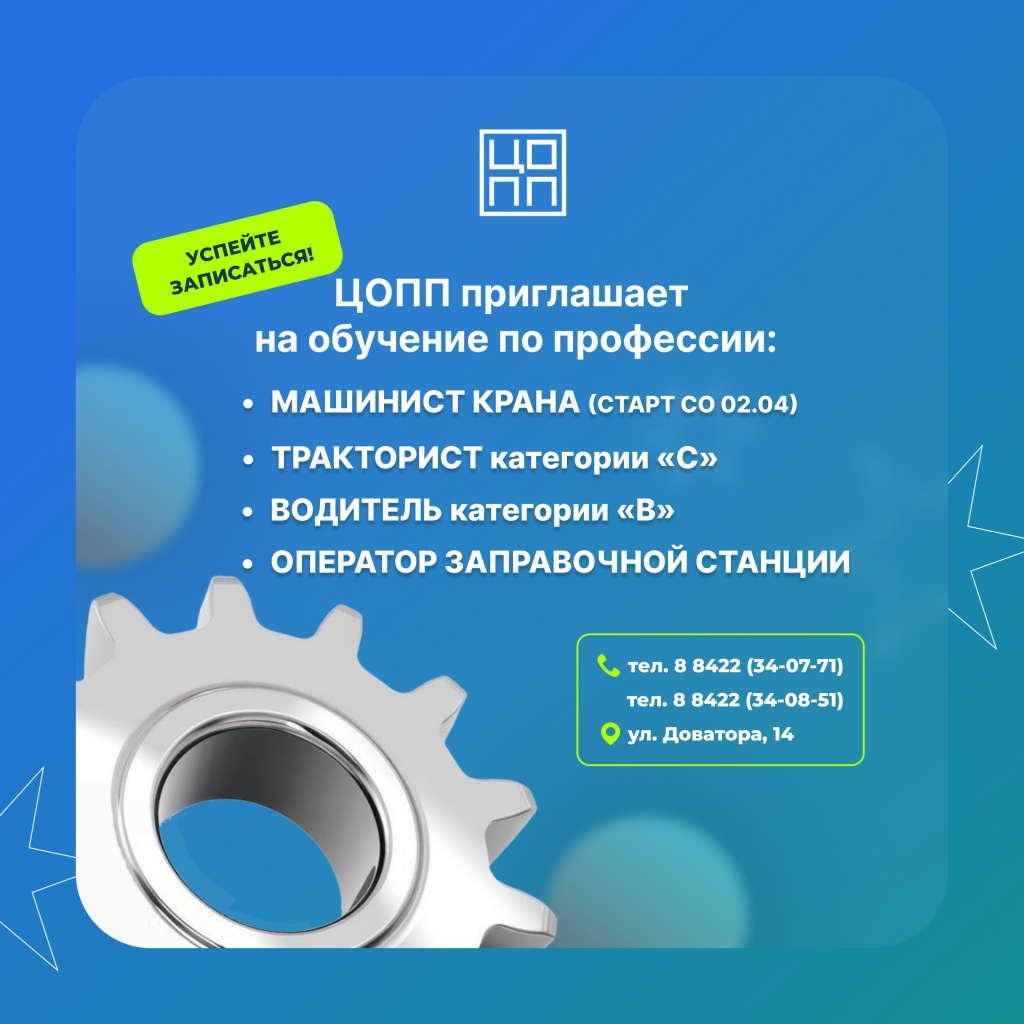 ЦОПП приглашает на платное обучение востребованным профессиям