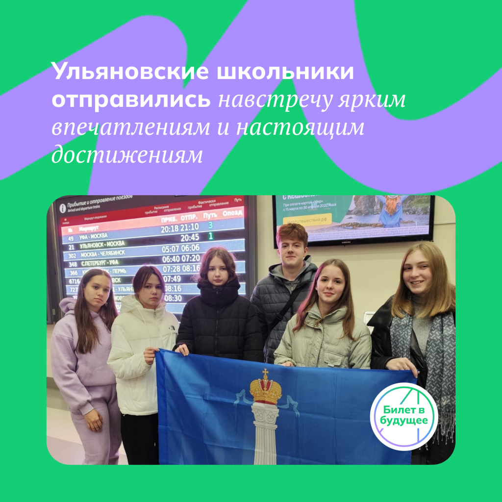 Напомним, учащиеся региона стали победителями конкурсного отбора Фонда – оператора Единой модели профориентации «Билет в будущее». Это Анна Стрельникова из 42-й Средней школы, Анастасия Авдошина из Гимназии №34 при УлГУ, Дарья Шкварова из Средней школы № 63, Глеб Смирнов из Мариинской гимназии, Арина Серова из Верхнемазинской основной школы им. Д.В. Давыдова Радищевского района и Арина Герасимова из Гимназии № 44 им. Деева В.Н.