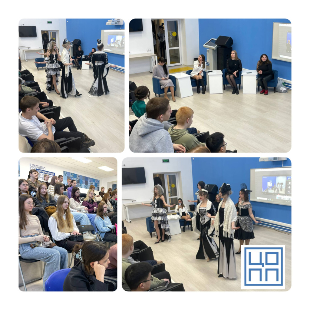 Учащиеся смогли пообщаться и с представителями Ульяновского техникума отраслевых технологий и дизайна: Еленой Постновой и Анной Ланцовой. Ребятам рассказали про направления подготовки и правила приема, а участницы Театра моды «Эдельвейс» под руководством Анны Ланцовой продемонстрировали коллекцию одежды, созданную обучающимися техникума.