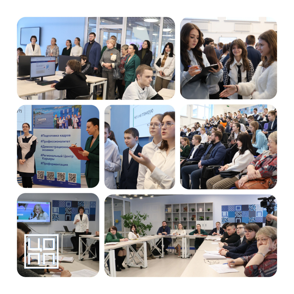 Перед началом мероприятия для его участников прошла экскурсия по нашему центру. Ее провела Елена Ярандаева. Наши гости также заглянули на площадки, где в это время проходили профориентационные мероприятия со школьниками и студентами: квиз «Знатоки профессий» (для учеников 76-й Средней школы), практикум по упаковке опыта и тренинг для ребят с ОВЗ (для студентов разных курсов Ульяновского многопрофильного техникума).