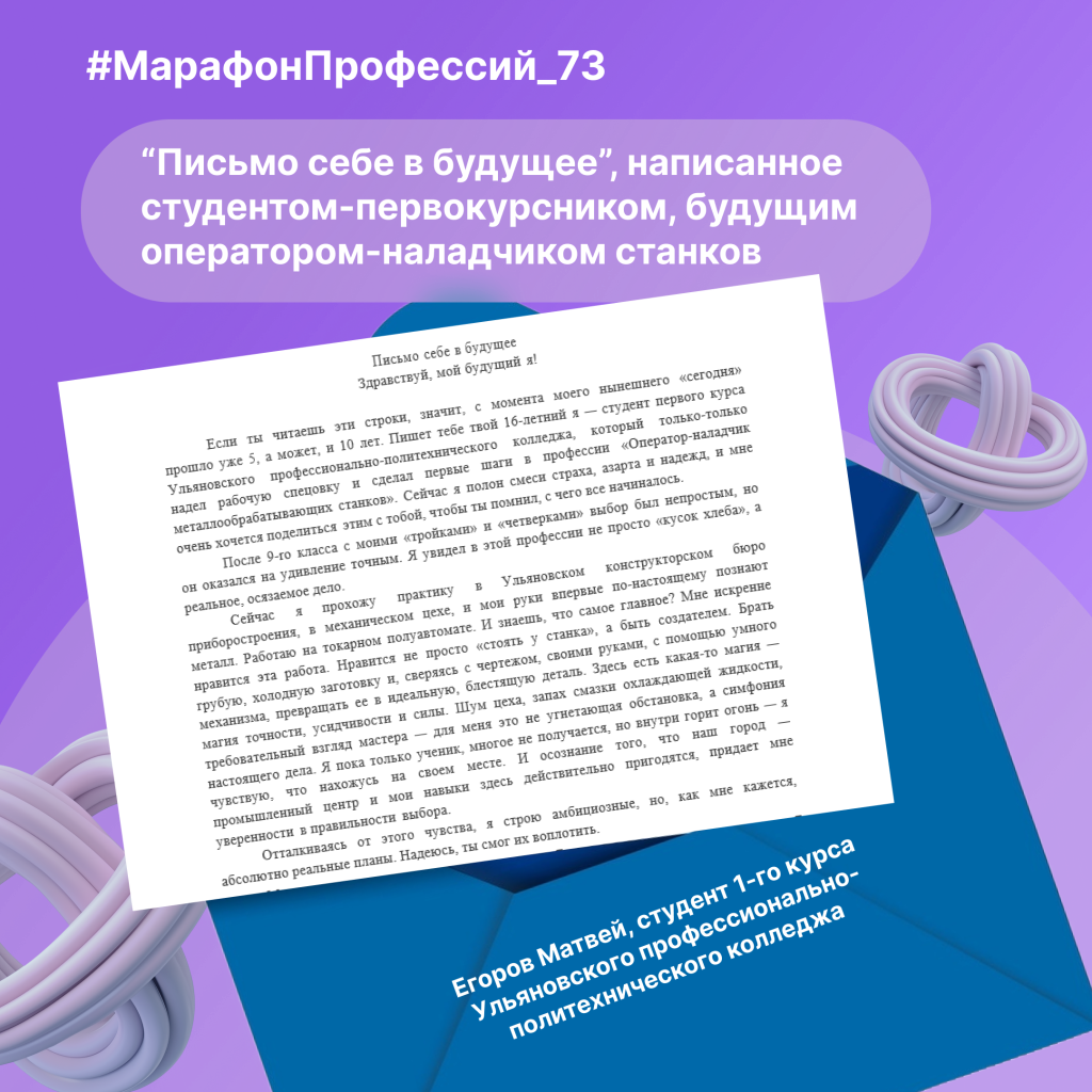 В рамках нашего Марафона профессий хотим поделиться вдохновляющей историей студента 1-го курса, Ульяновского профессионально-политехнического колледжа Егорова Матвея, который уже строит смелые планы на свое будущее/ Несмотря на то, что он недавно надел рабочую спецовку и приступил к практике, его сердце полно стремлений и ясных планов/ Матвей мечтает стать инженером и верит, что сможет решить любую, самую сложную производственную задачу.