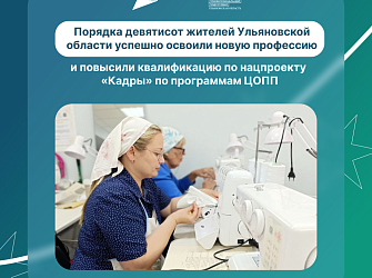 Порядка девятисот жителей Ульяновской области успешно освоили новую профессию и повысили квалификацию по нацпроекту «Кадры» по программам обучения ЦОПП