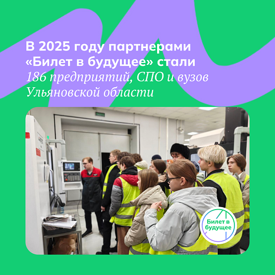 В 2025 году партнерами профориентационного проекта «Билет в будущее» стали 186 предприятий, СПО и вузов Ульяновской области