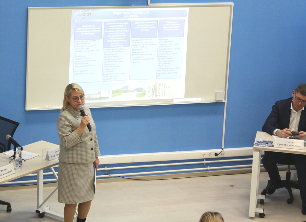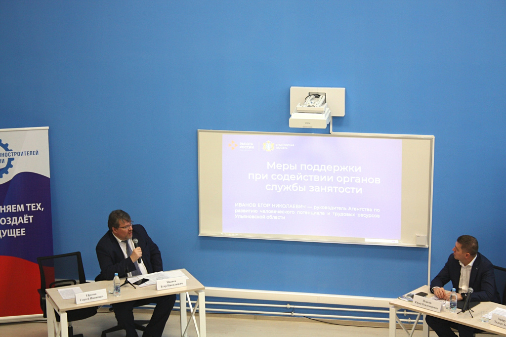 Егор Николаевич Иванов рассказал выпускникам о наиболее востребованных профессиях на предприятиях отрасли машиностроения, о мерах государственной поддержки молодых специалистов от службы занятости в регионе. Руководитель Агентства по развитию человеческого потенциала и трудовых ресурсов Ульяновской области подчеркнул: «Каждая третья вакансия не предъявляет требования к опыту работы. Надеемся, что сегодня каждый задумается какое из предприятий отрасли машиностроения выбрать для трудоустройства».